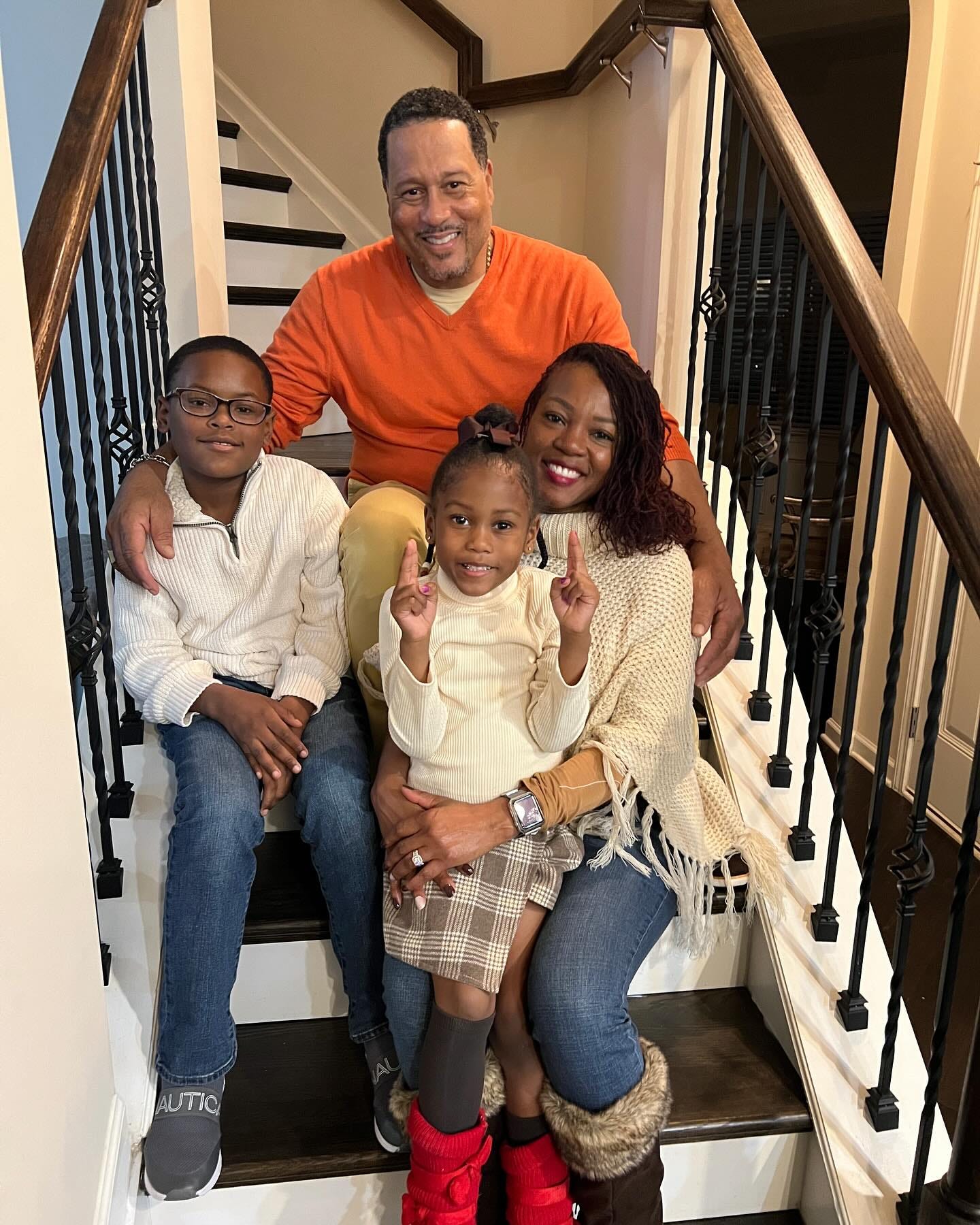 On a staircase inside his home, his arm rests comfortably around his wife Tamika, while their children sit close, smiling with the effortless joy that only comes from feeling safe and loved. It is a portrait that reveals more than a successful television chef—it shows a man who has rediscovered the true recipe for fulfillment.